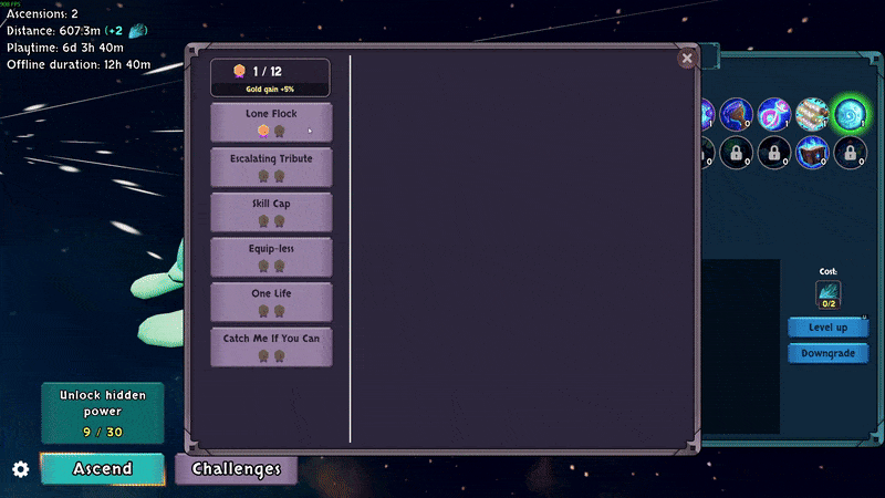 Beat challenges to gain corals and unlock powerful hidden ascension upgrades!